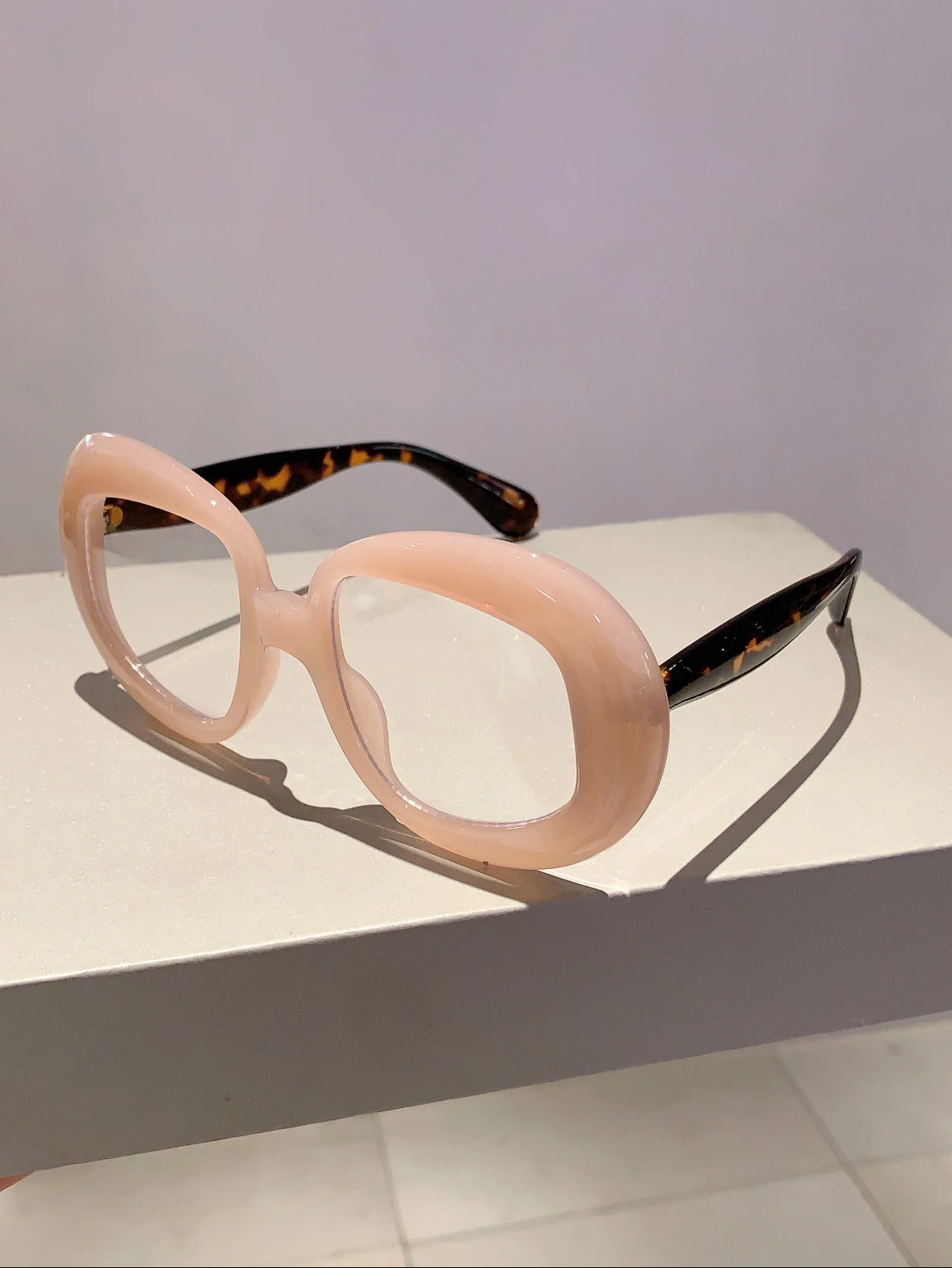 Make a bold statement in our Beige Vintage Oval Sunglasses. Featuring a Dark Tortoise print design and oversized oval shape, these sunglasses are the ultimate statement piece. The clear lens adds a touch of sophistication to any outfit. A must-have for any fashion-forward individual.